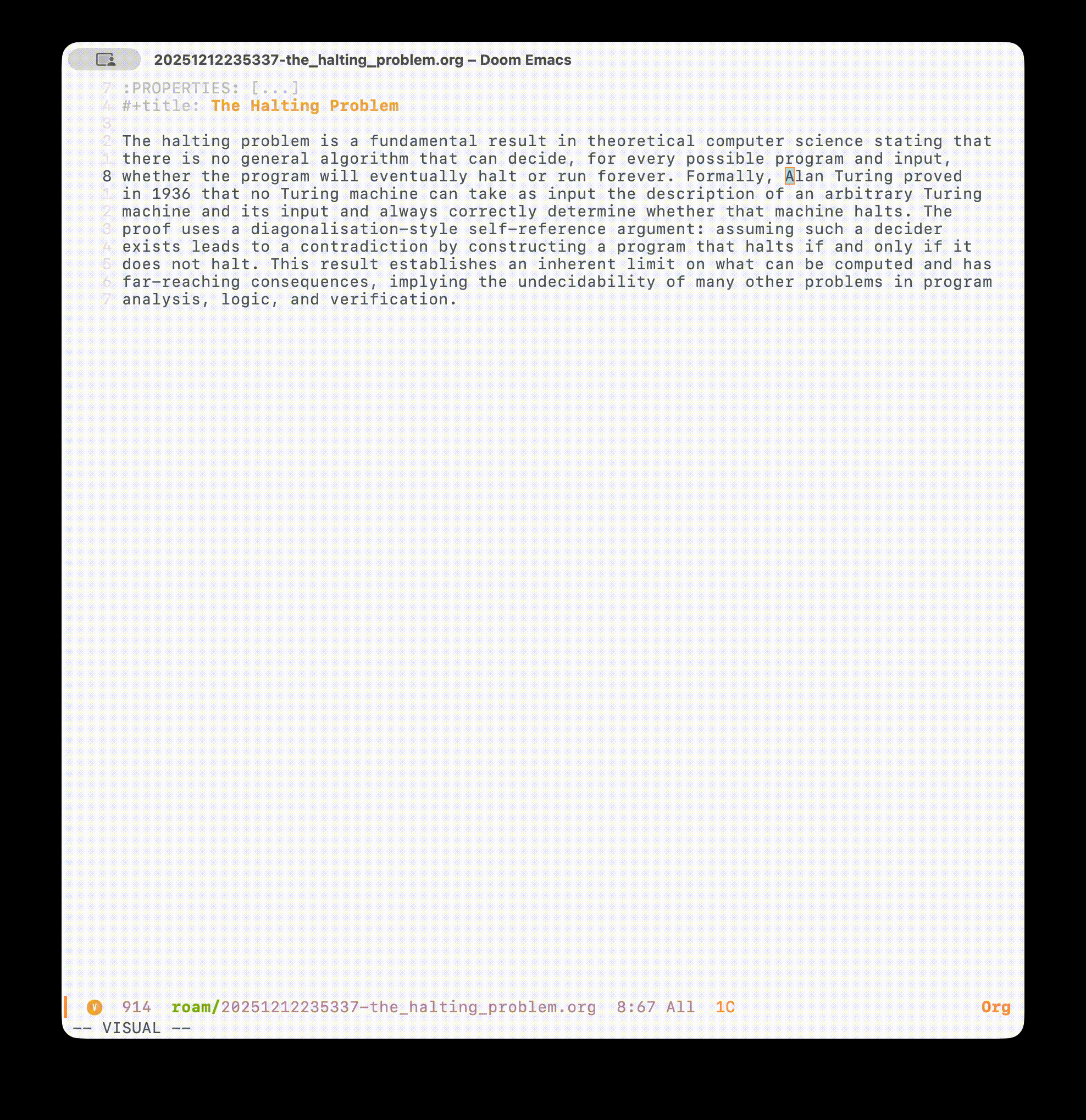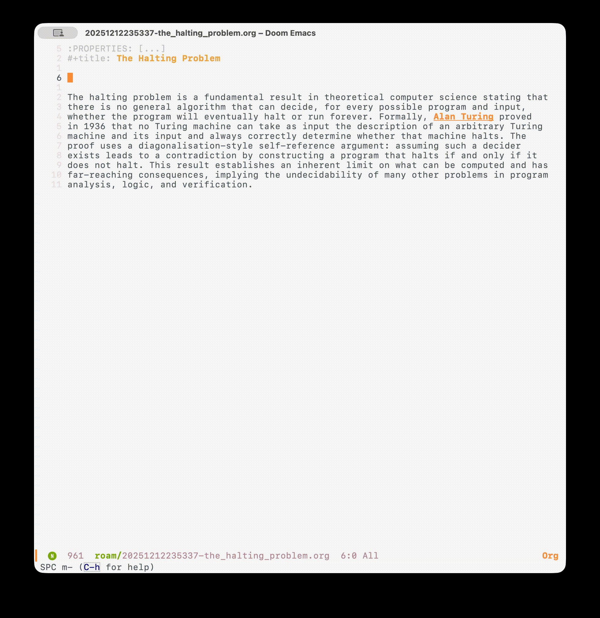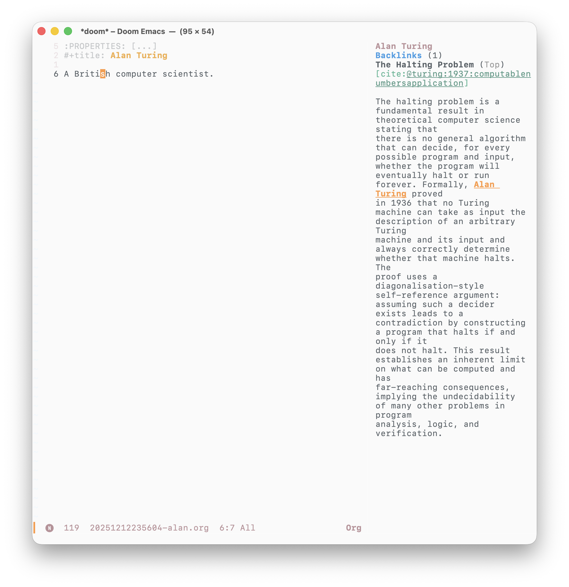 As I mentioned earlier, Org Roam is what we’re using to organise